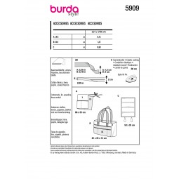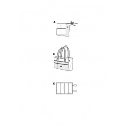 Mercerie : (A) Ruban largeur 1.5 cm : 2.35, (B) Ruban largeur 3 cm : 2.10 m, biais : 2 m (C) 60 cm de cordon élastique Entoilage Style Vil Fix