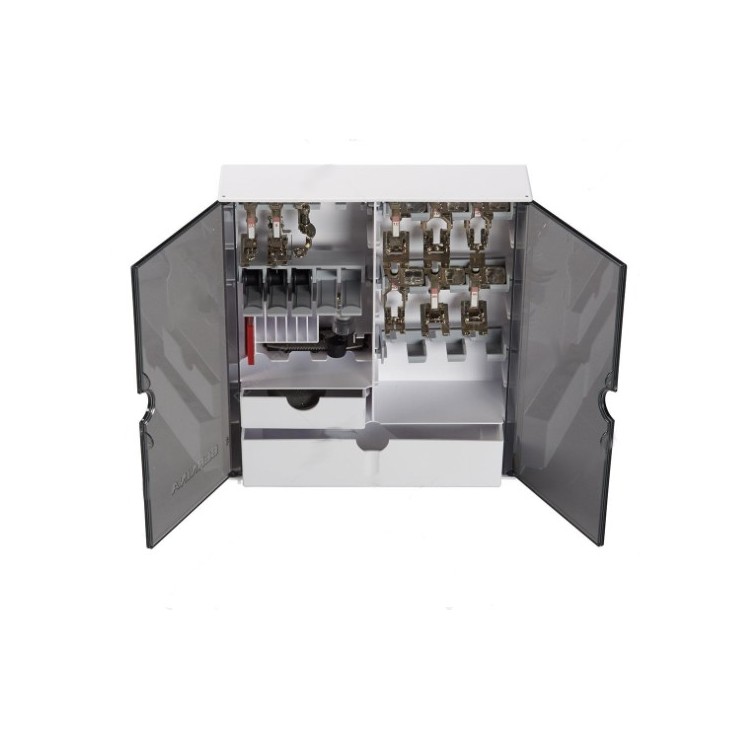 Ne laissez pas trainer vos accessoires de machine à coudre sur votre table à couture ! Bernina a pensé à tout pour vous organiser un coin propre et rangé. Organisez toutes vos canettes et vos pieds de biche dans votre boite à accessoires Bernina. Elle est vendue vide (sans accessoires) afin que vous puissiez y mettre tous les accessoires que vous avez pour coudre. L'armoire se ferme avec deux portes en transparentes pour tout voir en un coup d'œil !