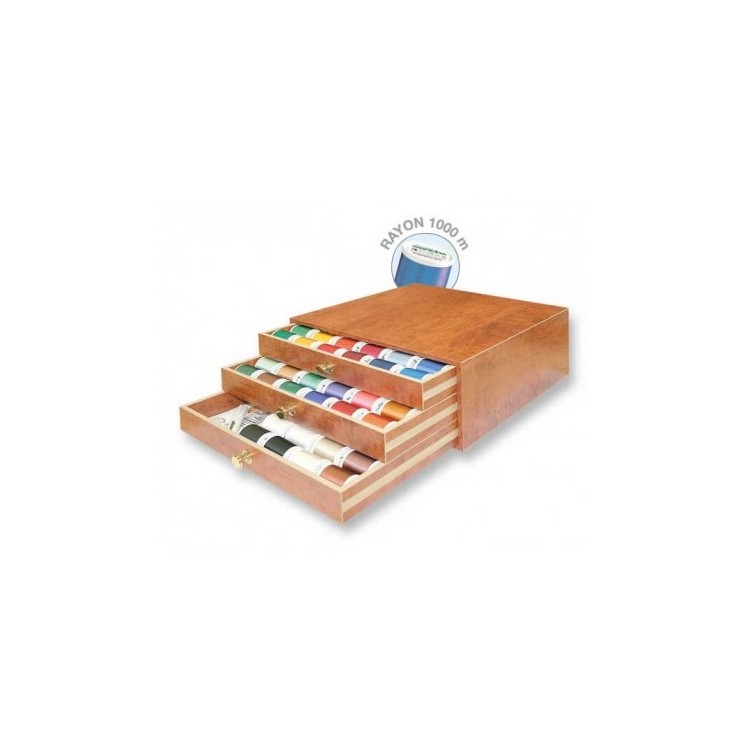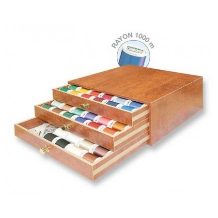 Coffret en bois de fils à broder Madeira rayon, à prix promo, pour machines à broder.