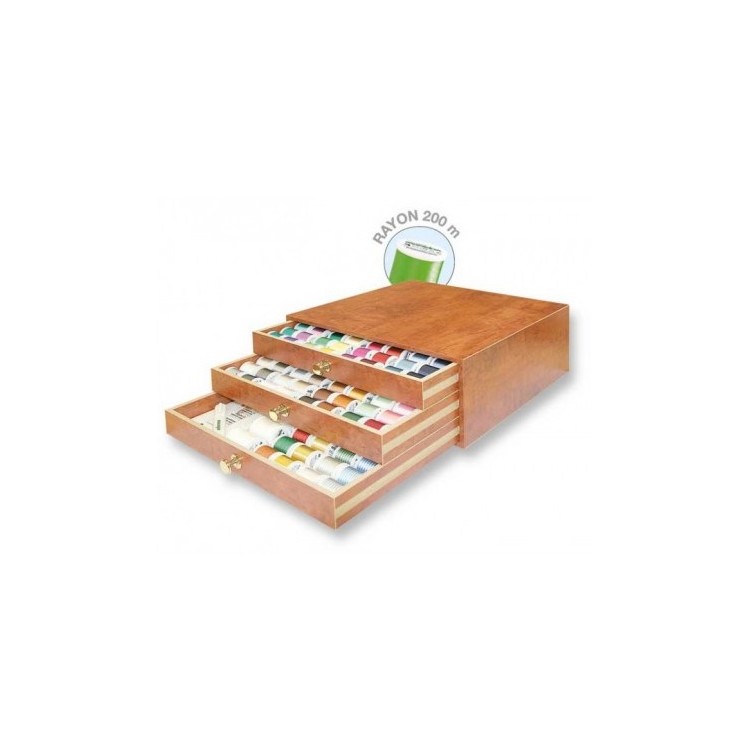 Coffret en bois de fils à broder Madeira rayon, à prix promo, pour machines à broder.