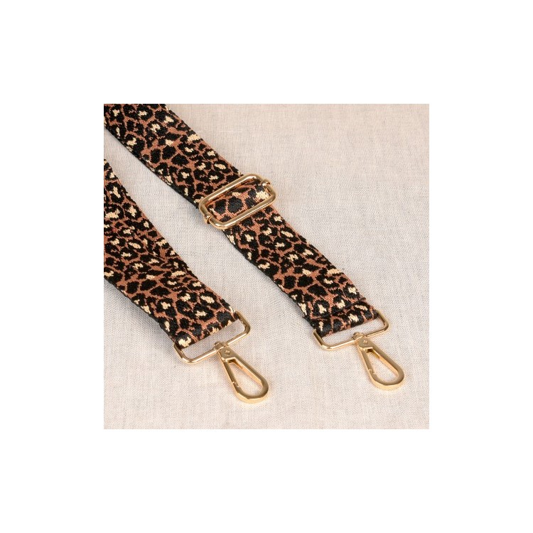 Cette bandoulière fantaisie est équipée de 2 mousquetons dorés et d'une boucle de réglage, sa longueur de 140 cm lui permet de s'adapter à de nombreux sacs, et donnera un petit coup de peps à toutes vos créations couture.