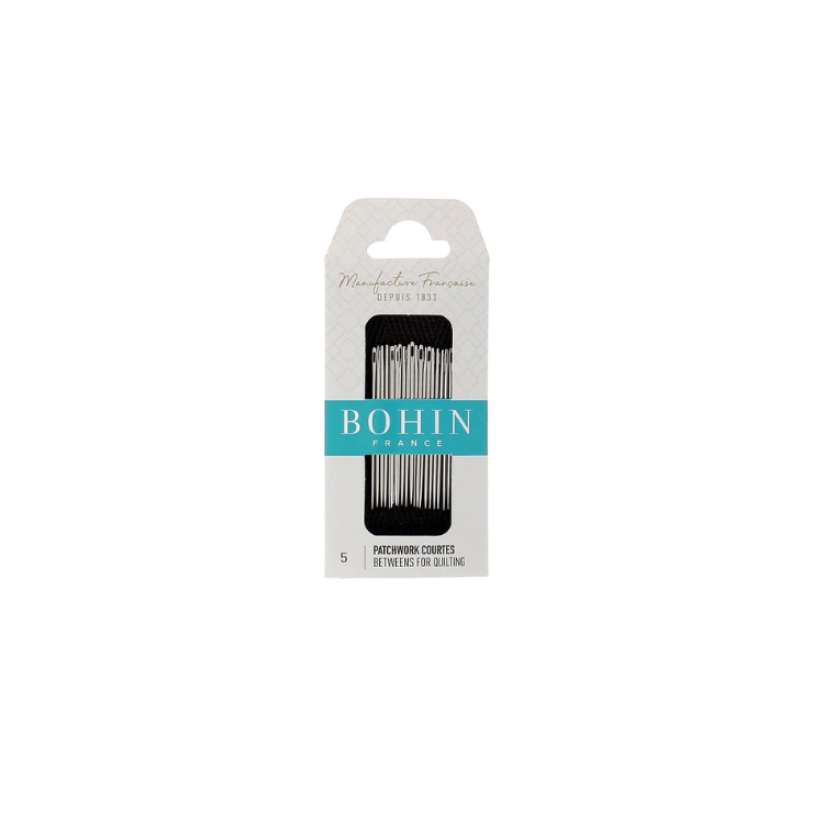 Aiguilles "demi longues" ou "courtes" Bohin spéciales pour le patchwork et les tissus serrés.