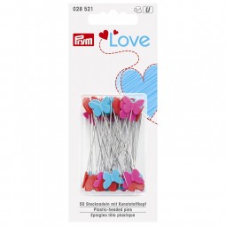 Ces longues épingles de 50 x 0,60 mm en acier inoxydable de la gamme Prym Love sont garnies de jolies têtes en plastique en forme de cœur ou papillon et sont un vrai point de mire pour les petits et les grands amateurs de couture. La jointure extrêmement stable entre la tige et la tête lui confère une capacité de sollicitation élevée. La pointe fine pénètre facilement à travers plusieurs couches de tissu sans endommager les fibres. Les têtes en plastique des épingles peuvent être bien tenues en main et sont très décoratives.
