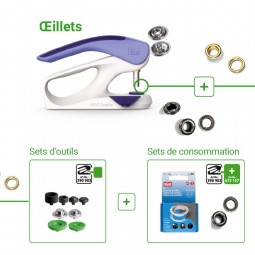 Découvrez le jeu d'outils de pose pour œillets avec rondelle uniquement. Il est prévu en 2 tailles : 11 et 14 mm, vous avez donc 6 outils de pose pour vos œillets. Clairement identifié sur l'emballage du produit.