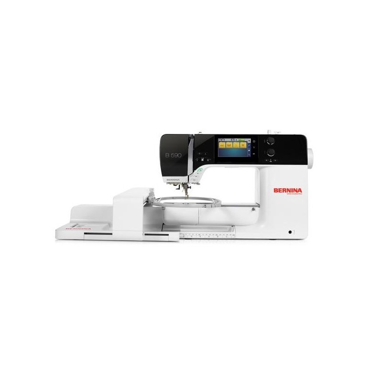 Son format idéal, sa grande surface de travail et son écran tactile intuitif font de la Bernina 590 une alliée incontournable pour des finitions impeccables et une créativité sans limite.