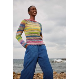 INFINITY est un fil mèche en mérinos extrafin qui séduit par son jeu de couleurs unique. Chaque pelote est conçue de façon à ne pas avoir de motif qui se répète, ce sont toujours les mêmes couleurs qui sont utilisées mais à un rythme irrégulier, à des intensités et dans des ordres différents.