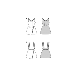Cette pochette de 2 patrons permettra de réaliser des robes cintrées à la taille et évasées en bas. Le bas du devant est asymétrique.
