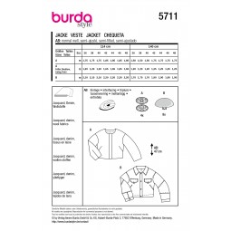 Mercerie : Entoilage thermocollant. A : 4 boutons-pressions à coudre. B : 8 boutons automatiques. Si vous le souhaitez, utilisez du fi l denim pour les surpiqûres.