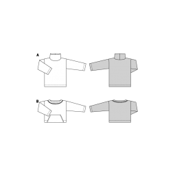 Cette pochette de 2 patrons pour réaliser des pulls à manches longues avec deux types de col : montant ou rond.
