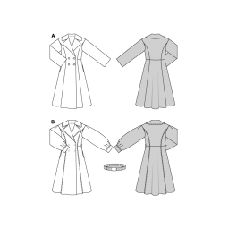 Cette pochette de 2 patrons permettra de réaliser deux manteaux à col large et avec boutonnage à l'avant. Les manches peuvent être effet bouffante.