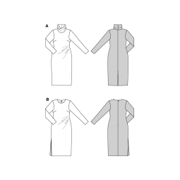 Cette pochette de 2 patrons permettra de réaliser deux robes droites avec fermeture dans le dos. L'une a un col rond et l'autre un col montant.