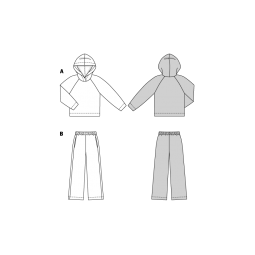 Cette pochette de 2 patrons vous permettra de réaliser un ensemble de sport avec pantalon et sweat confortables en tissu extensible.