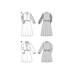 Cette pochette de 2 patrons vous permettra de réaliser deux robes longueur genoux ou mollet avec deux finitions différentes au niveau du col qui est montant.