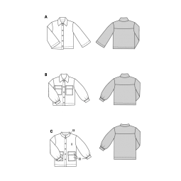 Cette pochette de 3 patrons pour réaliser des vestes façon surchemise. Choisissez votre version à manche classiques ou évasées. Pour le col vous aurez la possibilité d'avoir un col rond ou effet chemise classique. Le nombre et l'emplacement des poches varie lui-aussi.