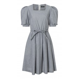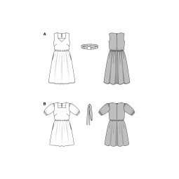 Cette pochette de 2 patrons vous permettra de réaliser des robes effet WOW dans deux styles différents : des manches ballon, un col carré et un nœud effet rétro romantique ou une touche moderne inspiration Prada avec son tissu technique, la jupe ample et une boucle à la ceinture.