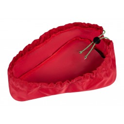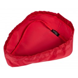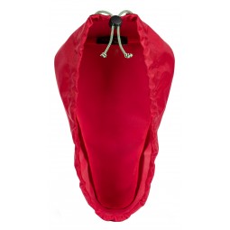 Mercerie : A : 1 fermeture à glissière de 25 cm. Sangle, largeur 3,8 cm : 1,40 m. Sangle, largeur 2,5 cm : 1,60 m. Biais élastique, largeur 2 cm (largeur fi nie 1 cm) : 0,30 m. 2 anneaux semi-circulaires, largeur 2,5 cm. 2 mousquetons, largeur 3,8 cm. 1 boucle coulissante, largeur 3,8 cm. 2 boucles de réglage, largeur 2,5 cm. B : sangle, largeur 2,5 cm : 0,80 m. Biais élastique, largeur 2 cm (largeur fi nie 1 cm) : 0,15 m. Cordon élastique : 0,50 m. 2 oeillets et 1 bouton-pression à riveter. 1 bloque-cordonavec 2 ouvertures. 1 anneau semi-circulaire, largeur 2,5 cm. C : (pour la petite et la grande selle) : cordon élastique : 1,00 m. 2 oeillets à riveter. Biais pré-pliélargeur 2 cm (largeur fi nie 1 cm) : 1,60 m (petite), 1,80 m (grande). 1 bloque-cordon avec 2 ouvertures.