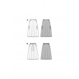 Cette pochette de deux patrons vous permettra de réaliser des jupes longues à plis Choisissez une version à poches plaquées ou une version à nouer devant.