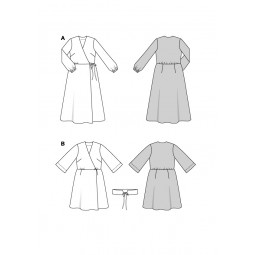 Cette pochette de deux patrons vous permettra de coudre des robes façon portefeuille avec deux types de manches et de serrage à la taille.