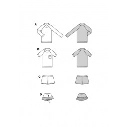 Cette pochette de deux patrons vous permettra de réaliser deux types de haut pour maillot de bain, parfait tenue anti-uv. Pour le bas, réalisez un short. Retrouvez également un chapeau façon bob.