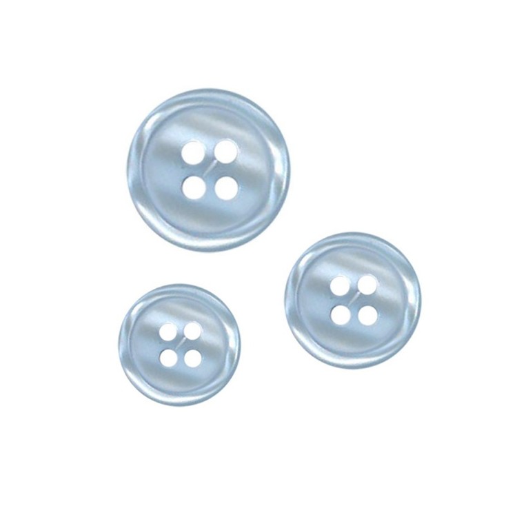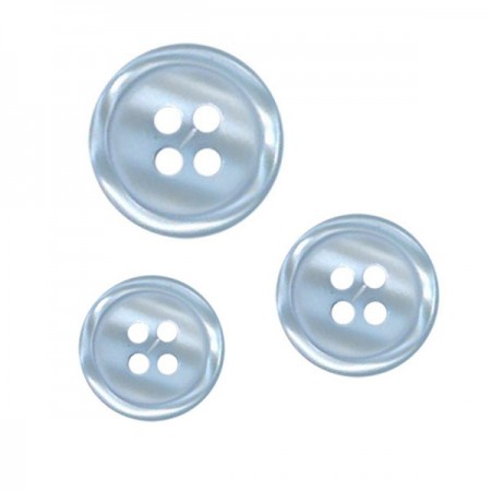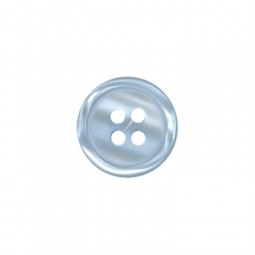Bouton rond plastique brillant, avec un petit rebord, à 4 trous.