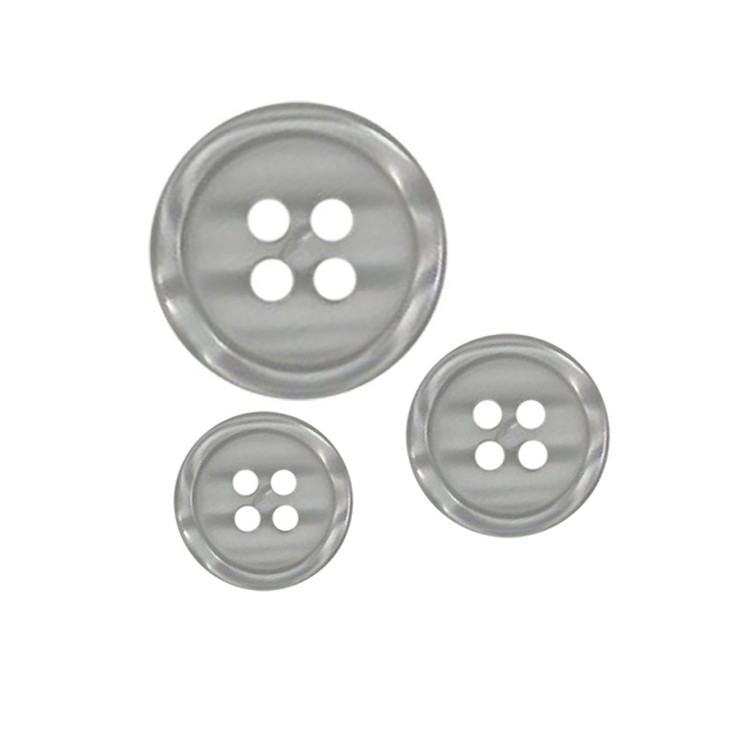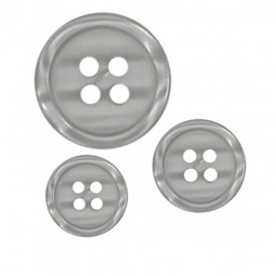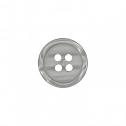 Bouton rond plastique brillant, avec un petit rebord, à 4 trous.