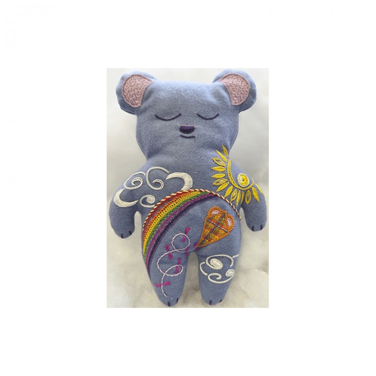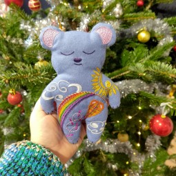 Kit proposé par Fanny Legal, qui mêle couture et broderie Glazig pour réaliser un doudou de 19,3 x 14 cm.