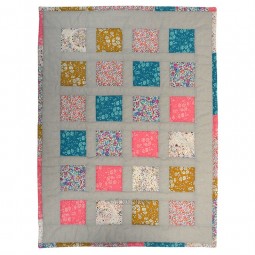 Fabriquez vous même votre plaid esprit patchwork avec de délicats assortiments de tissus de la marque Liberty. Une couverture en coton tissu percale uni incrusté de carrés de motifs et entouré de biais à réaliser dans les restes de tissus Liberty.