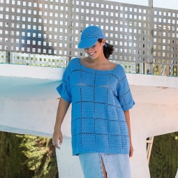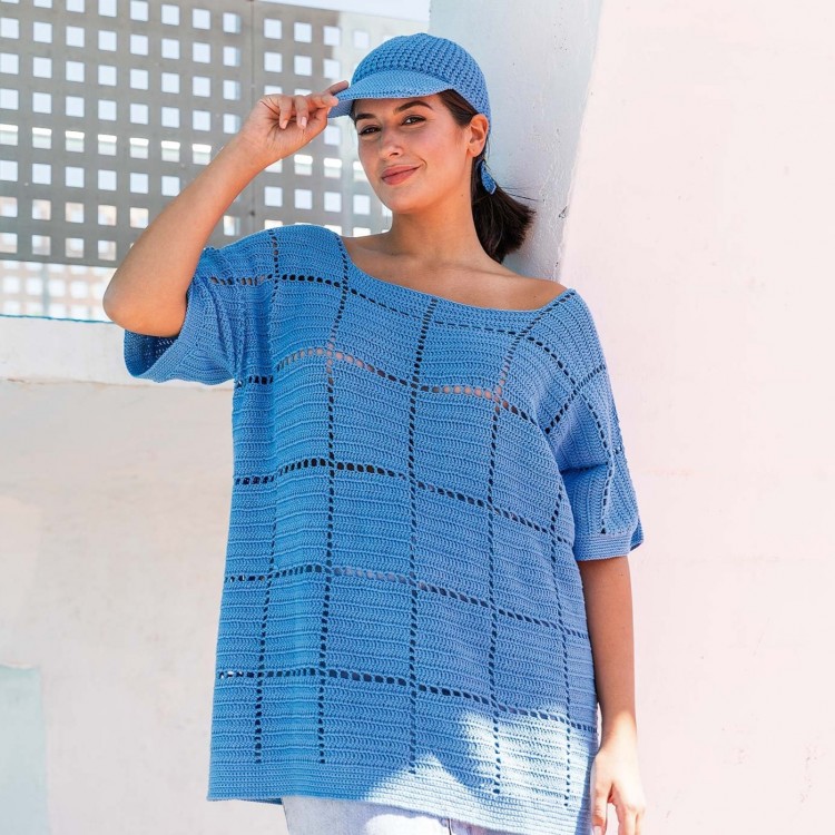 Crochetez un pull pour la saison chaude en fil fair cotton de Katia. Le pull se tricote à plat avec coutures et se caractérise par un point accordéon sur le plastron et les manches.