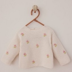 Réalisez un modèle avec le fil Cotton Cashmere de Katia. Le modèle se caractérise par un motif de losanges en dentelle et des fleurs brodées. Le modèle a des bretelles larges et comporte des petits boutons et le col est rond.