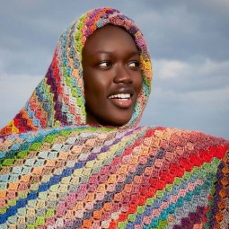Kit de laine à réaliser à partir du fil Infinity de la marque Lang Yarns. La couverture se crochète facilement et permet de bien s'envelopper.