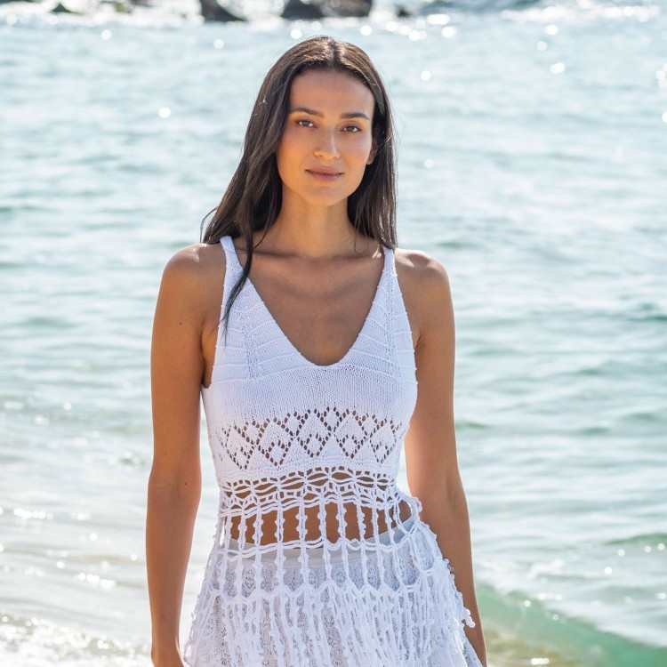 Réalisez un modèle original pour la saison chaude en fil fair cotton de Katia. Le top se réalise au tricot et au crochet.