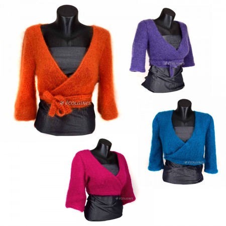 Ce kit de tricot débutant vous permet de réaliser un cache-cœur court. Le devant est croisé et noué par des bandes continues des pans du devant. Ses manches 3/4 lui donne une allure très délicate. Le modèle se tricote à plat avec coutures.