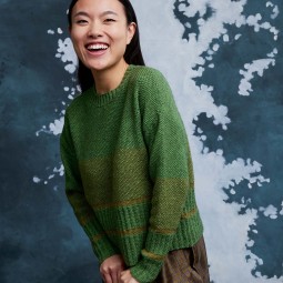 Kit de laine à tricoter à partir du fil Nomad de la marque Lang Yarns. Le pull se tricote à plat avec coutures d'assemblages. Deux couleurs s'imbriquent.
