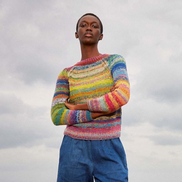 Kit de laine à réaliser à partir du fil Infinity de la marque Lang Yarns. Le pull se réalise à plat avec coutures d'assemblage.