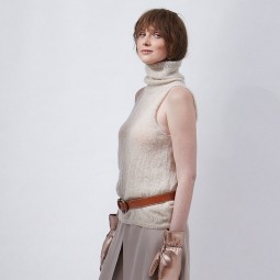 Un modèle de tricot de la marque Plassard. Le débardeur se tricote à plat et comporte un col roulé. Parfait à porter sur un sous-pull.