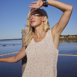 Un modèle de tricot à réaliser avec le fil d'été Cotton Tweed de Lang Yarns. Le modèle se tricote à plat avec coutures d'assemblage.
