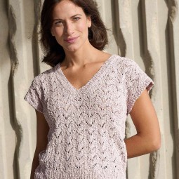 Réalisez un modèle avec le fil Esencia de Katia. Le t-shirt se tricote à plat avec un point ajouré.