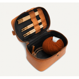 Ce sac est conçu pour ranger facilement vos petits ouvrages. Son intérieur est doté de poches pratiques pour ranger vos petits accessoires, comme vos marqueurs de mailles. Il est également doté de poches doublées pratiques pour ranger vos aiguilles à tricoter et vos crochets. De plus, son étui rigide en cuir protège vos objets fragiles.