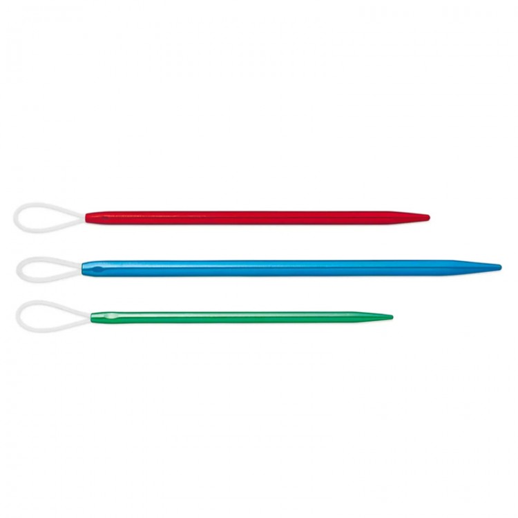 3 aiguilles à bout arrondi de tailles différentes pour assembler le devant et le dos de vos pulls, gilets ou veste en laine.