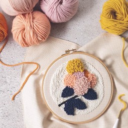 Créez des motifs brodés à effet 3D avec le punch needle, par exemple sur des coussins, tentures, doudous et beaucoup d'autre.