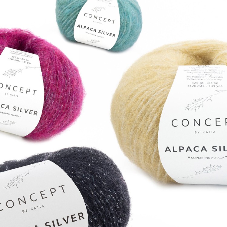 Alpaca Silver de katia est une combinaison moelleuse de laine d'alpaga au poil court et à l'éclat argenté. C'est une laine soyeuse et spectaculaire pour créer de larges vestes et gilets et des pulls modernes. Alpaca Silver permet de réaliser des ponchos pour femmes très lumineux et des châles brillants pour l'hiver.
