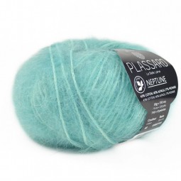 Neptune de Plassard est un fil 100 % naturel, composé d'une chaînette de coton (43%), d'où se déploient de doux et chauds fils d'alpaga (40%) et de mohair (17%). Sa double teinture apporte à la gamme des nuances bicolores plus ou moins contrastées pour des rendus à la fois denses et profonds.