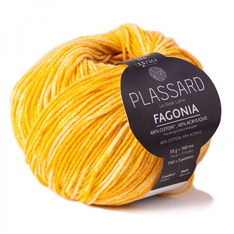 Fagonia est un multibrin retordu composé de coton issu de l’agriculture biologique (60%) et d’acrylique (40%). Son imprimé spray dye confère un aspect chiné et délavé à la gamme estivale composée de 4 coloris à la fois vibrants et singuliers.