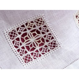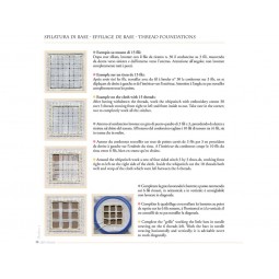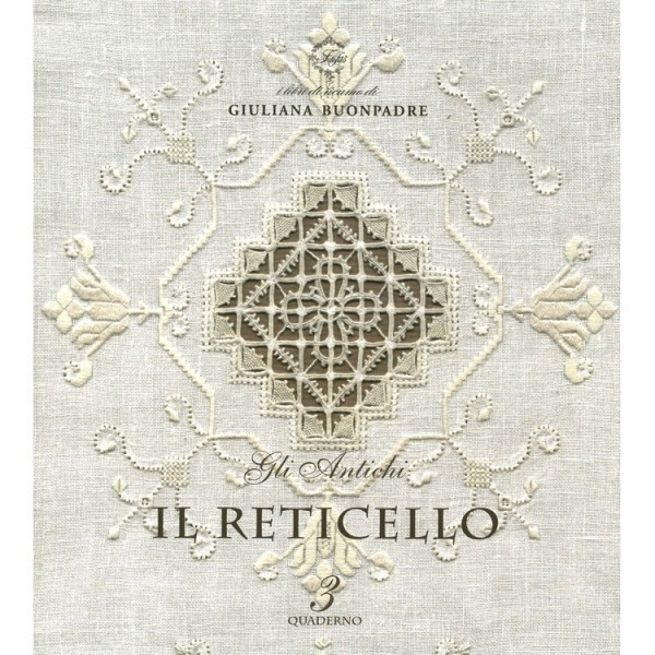 Il reticello est le manuel de base pour apprendre et maîtriser cette technique. La préparation se fait en effilant un tissu régulier en lin de 15-16 fils par cm (mais pour commencer, un tissu de 12-14 fils conviendra aussi bien) afin de créer les espaces "vides" dans lesquels on brode des motifs différents, en choisissant les fils les mieux adaptés à la toile utilisée. Le livre explique toutes les étapes de la procédure: depuis l'effilage préparatoire jusqu'à l'exécution de broderies complexes. Le tout est illustré de diagrammes et de photos des ouvrages finis. C'est par mes propres interprétations dans ce livre et dans les volumes suivants que j'ai essayé de raviver le Reticello, né au XVème siècle à Venise. En effet, dans de multiples applications il apporte une touche d'élégance et de transparence: aux cadeaux (couvre-livre, pelote à épingles, petit coussin, etc…) et à toutes sortes de linge de maison (coussins, centres de table, nappes, draps, rideaux, etc…).