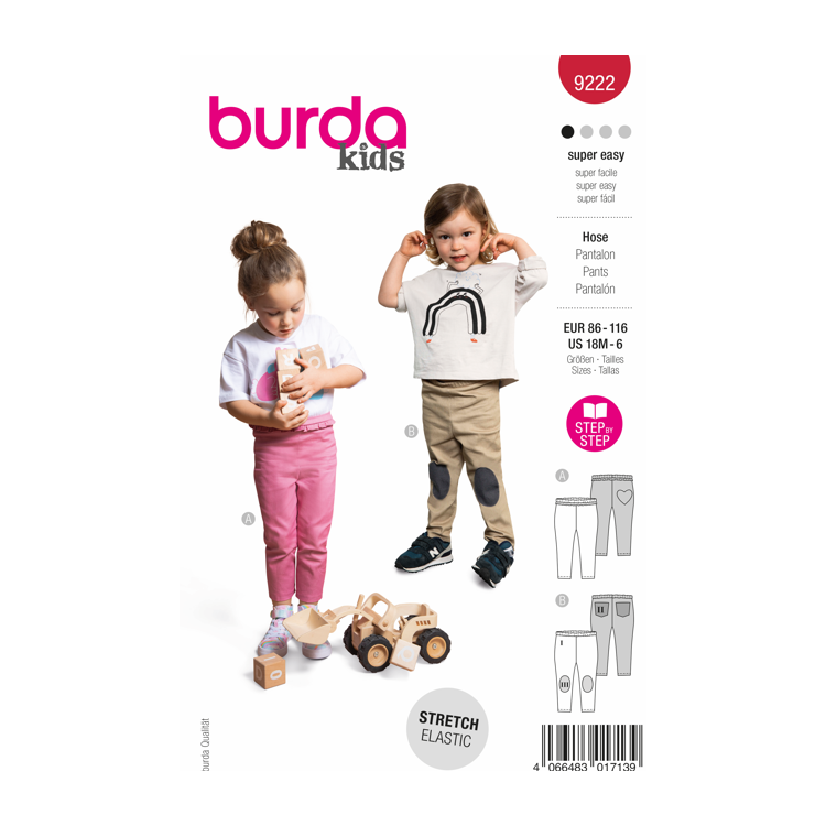 Pochette de patrons burda pour réaliser des leggings avec au choix, des poches au dos classiques, poche coeur ou des renforts aux genoux.