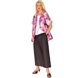 Créez plusieurs ensembles pour femme grâce à ce patron Butterick : Chemise ample, avec col et manches au-dessus des coudes, à ourlets piqués. Haut à passer par la tête, tunique ou robe évasée. Jupe dessous au-dessus des chevilles. pantalon évasé ou ample à jambe droite, les deux avec taille élastiquée et poche de côtés