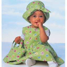 Créez plusieurs ensembles pour bébé grâce à ce patron Butterick : Barboteuse chasuble, robe, combinaison, culotte, pantalon, chapeau et sac