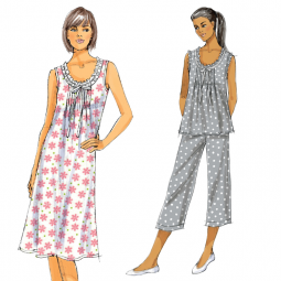 Ce patron de la marque Butterick vous offre de nombreuses combinaisons pour réaliser une tenue de nuit sur mesure et adaptée à vos envies. Haut, robe et pantalon pour des tenues confortables à votre image. 6 possibilités pour réaliser ce patron : sans manche ou manche longe. Très longue ou aux genoux ou encore avec volant sur le bas de la robe et les manches, ou encore optez pour un pantalon.