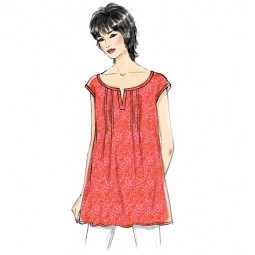 Butterick vous propose avec ce patron de vous lancer dans la confection d'une tunique ample passé par la tête, avec une bordure d'encolure en biais, plis devant et ourlet étroit. Trois longueurs de manches, et deux finitions différentes pour le bas.