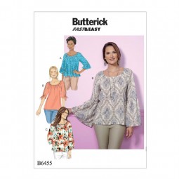Patron de couture Butterick pour réaliser un haut ample, à passer par la tête, à encolure élastique, variations de longueur et de manche